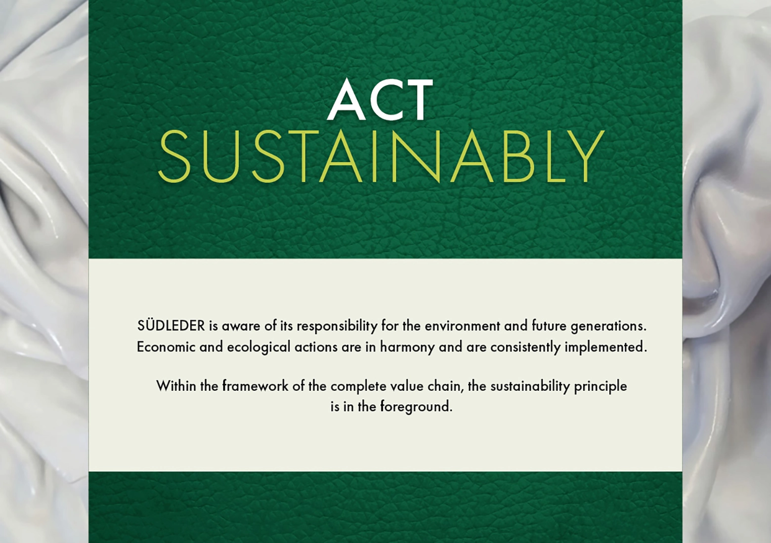 SÜDLEDER perfectly combines environmental protection and cost effectiveness, creating safe production processes for people and the environment. Our use of natural resources is just as important as a respectful approach to our products.