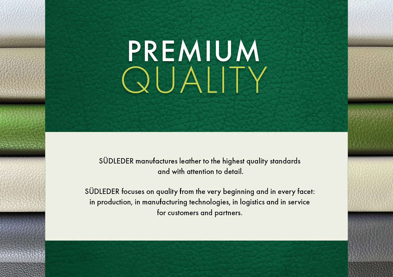We are SÜDLEDER and proud of it. This slogan represents everything that SÜDLEDER stands for. SÜDLEDER is characterised by tailor-made services paired with exclusive product quality. We receive global recognition for our high-quality tanning processes. We are passionate about sustainability, environmental responsibility and take a respectful approach to our most valuable material — leather. We are future-oriented and act conscientiously and sustainably. Each day, we aim to improve things for ourselves and future generations.