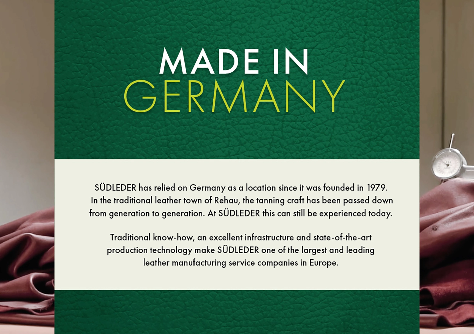 ‘Made in Germany’ sustainable premium quality: this is what the SÜDLEDER brand stands for. Economical and ecological behaviour is our top priority. Sustainability is more than just a buzzword here. Sustainability is consistently implemented throughout our entire supply chain and valued company-wide.