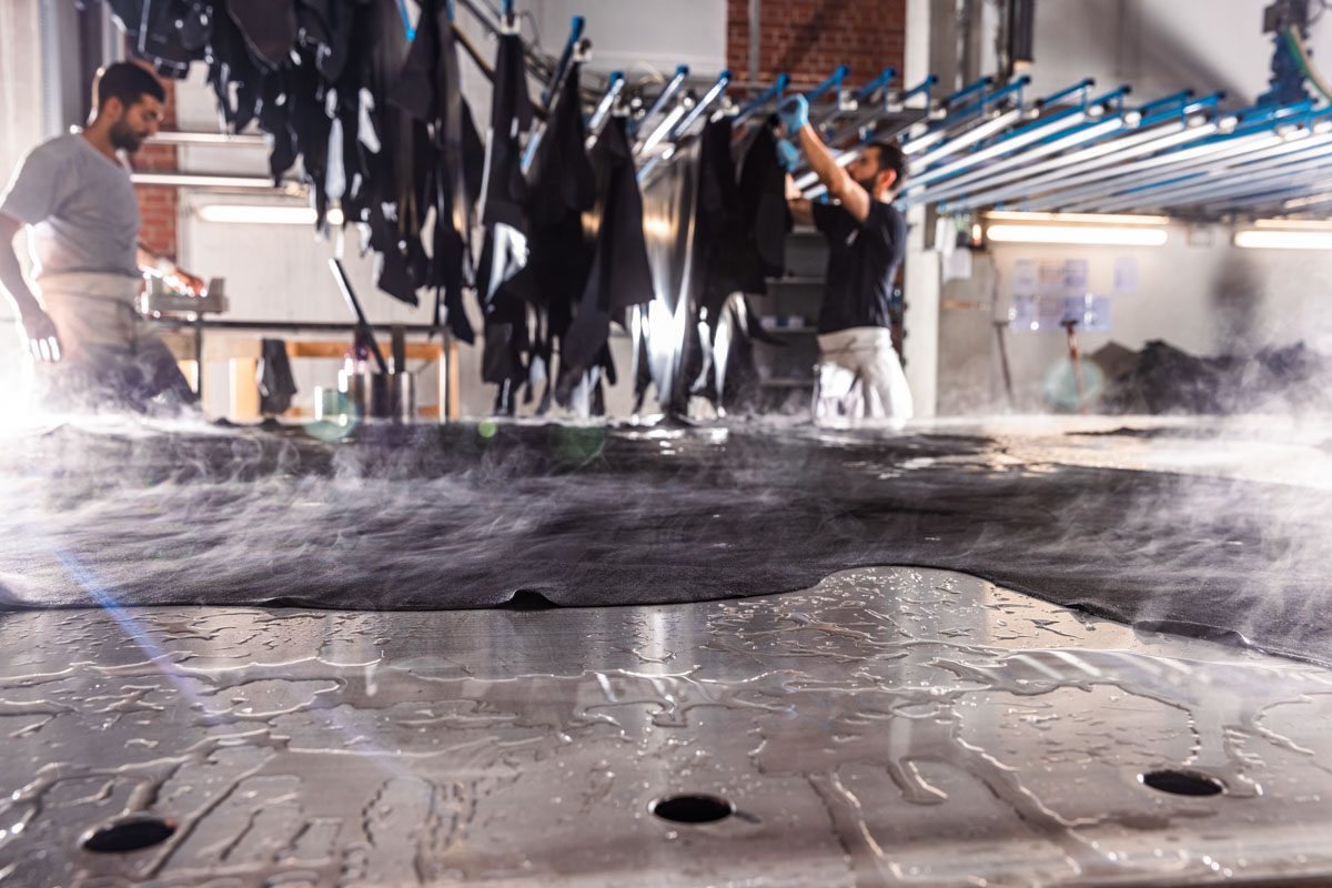 Das Trocknen erfolgt mittels Vakuum-, Spannrahmen-und/oder Hängetrocknung.